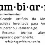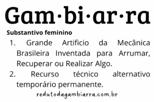 Gam.bi.ar.ra [Substantivo feminino] Grande artifício da mecânica brasileira, inventado para arrumar, recuperar ou realizar algo.…